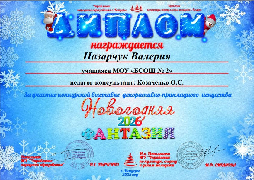 Поздравляем победителей МОУ «БСОШ№2» в конкурсной выставке-продажи декоративно-прикладного искусства «Новогодняя фантазия-2026»: